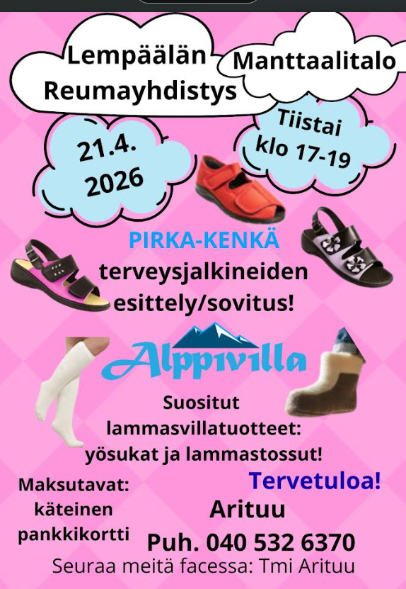 Pirka-Kenkä oy edustaja tulee kertomaan ja esittelemään yrityksen valmistamia kotimaisia jalkineita. Yritys valmistaa kenkiä joilta vaaditaan käytössä paljon, mm. erityiskengät, työterveysjalkineet, potilasjalkineet ym.